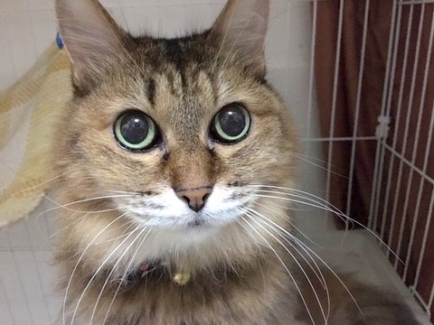 | 特徴(性格など) | 仮名:だぼちゃん メス 年齢:7歳くらい 不妊手術済・ワクチン・検便・ノミダニ駆虫済 エイズ・白血病共に陰性 7年暮らした前のお家から我が家に移ってしばらくは少し緊張した日々でしたが、今では甘えん坊の本領発揮! アタマ撫でて~、ブラッシングして~くいん♪くいん♪と一生懸命催促します。 少しやせ気味ですが、血液検査の結果、正常。 お口の中も歯周病など無く、「歯がとってもキレイ」と先生に褒めて頂きました。 「シーバデュオ」が大好きです。 大きな目に長いふさふさしっぽ。愛情をかけて下されば、ゴージャスなねこちゃんになると思います。 大人猫なので新しい環境に慣れるのに時間は少し掛かるかもしれませんが、ゆっくりとだぼちゃんのペースに合わせて下さる方とのご縁をお待ちしています。 |