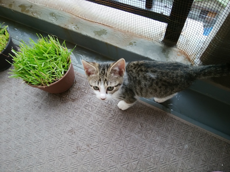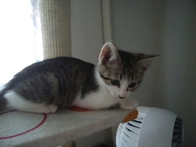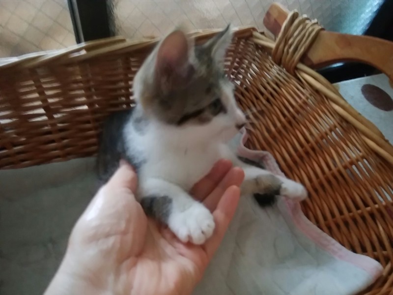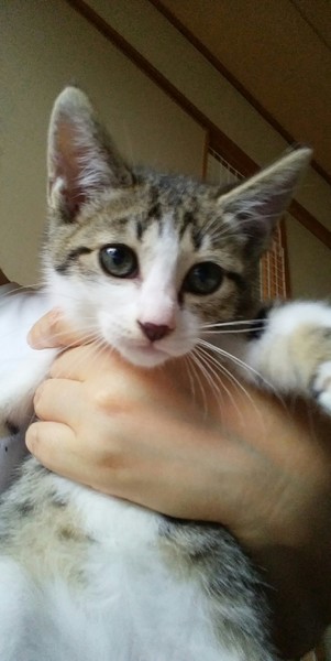 | 里親募集する理由 | 梅雨入りした日、とある公園を通りかかると3、4羽のカラスが飛び跳ねる中に1匹の仔猫が!で、速やかに保護しました。ケガはなく、シャンプーするもノミ一匹ついていませんでした。遺棄されたのだと思います。 梅雨なので仮名は「テル」君にしました。 我が家にはすでに多数のネコがいるため、里親さまを募集させていただきます |