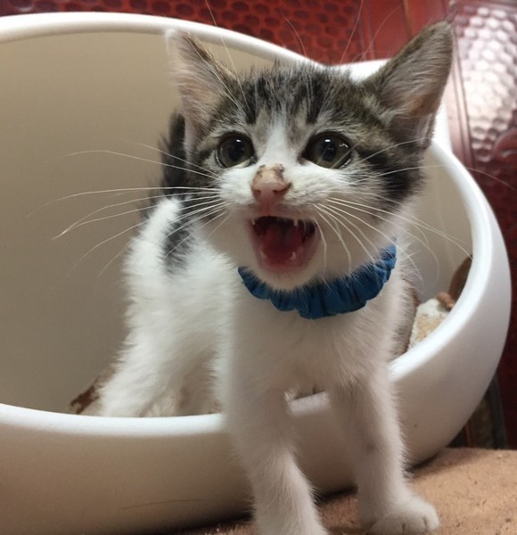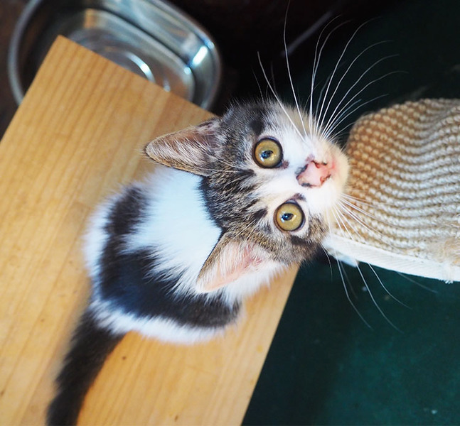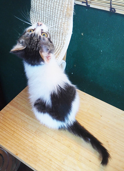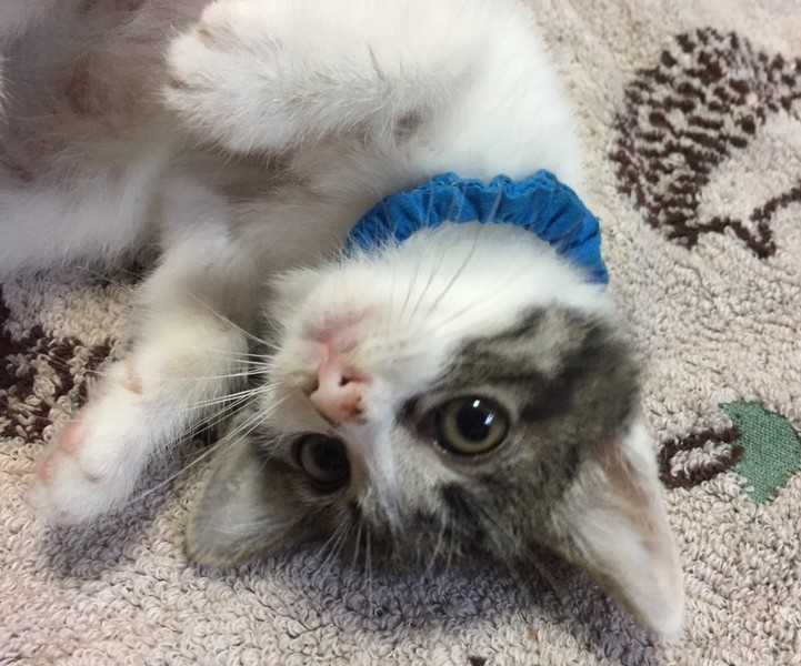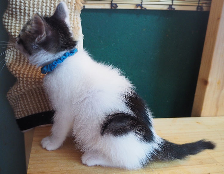 | 特徴(性格など) | 最初はちょっぴりビビりだったけど、今ではしっかり甘えん坊「ちくわ」くん♡ 素直な優しい男のコ♪ 現在、ドライフードを置き餌として、栄養補給のため、一日3回程度のパウチを与えています。 <推定誕生日:5月上旬> |