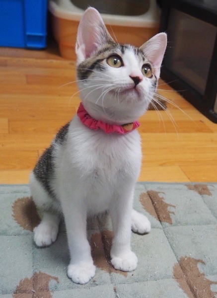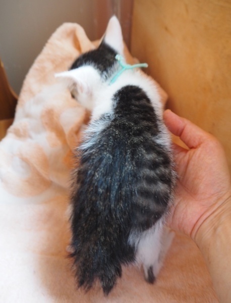 | 特徴(性格など) | ぼんぼりシッポの「はんぺん」ちゃん♡ 人の目をみて、しっかり自己アピールできる、頭の良い、素直な男のコ♪ 現在、ドライフードを置き餌として、栄養補給のため、一日3回程度のパウチを与えています。 <推定誕生日:5月上旬> |