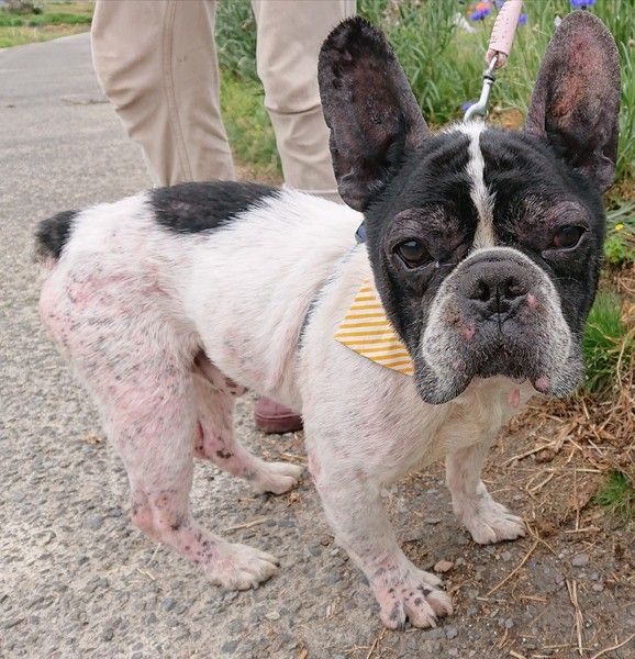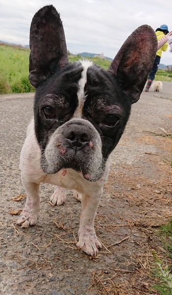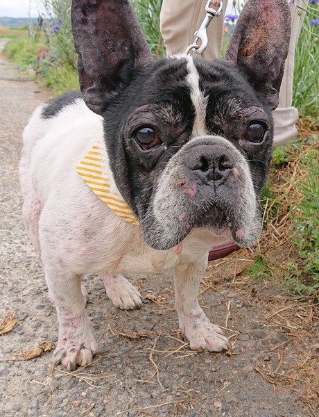 | 特徴(性格など) | 8キログラムのフレンチブルの男の子です。なんとも言えない味のある子です。皮膚炎で少し赤くなっていますが、シャンプーを3日に1回しているので、だいぶマシになりました。預りさんの家では、他の犬や猫とも仲良くしています。 この子を家族に迎えていただけませんか、ぜひ会いにきて下さい。 |