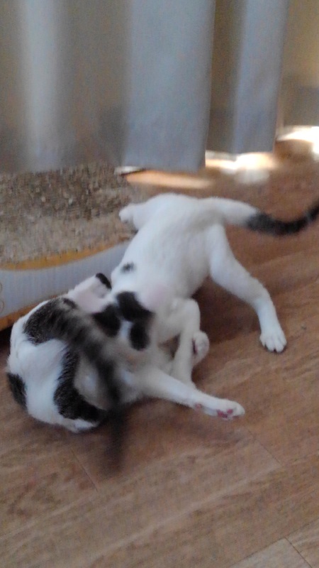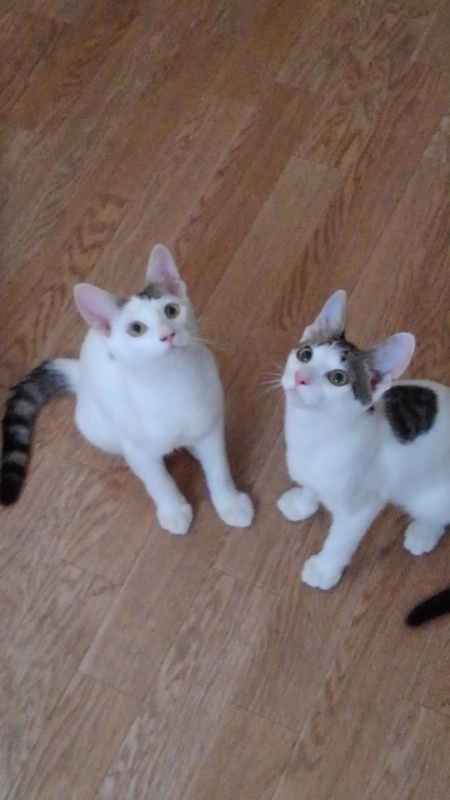 | 特徴(性格など) | きじ白兄弟です。ふにふには人馴れ抜群。おなかみせてコロコロします。白多めのてんてんは慎重派でまだこわがりですが、二匹でニャンプロレスを延々。二匹ともカリカリもウェットフードも大好き、食欲旺盛です。猫エイズ陽性ですが、安全安心な環境の飼い猫暮らしだと発症することなく寿命を全うする子がほとんどです。どうかご理解くださり、兄弟を家族に迎えてやってください。 | ||