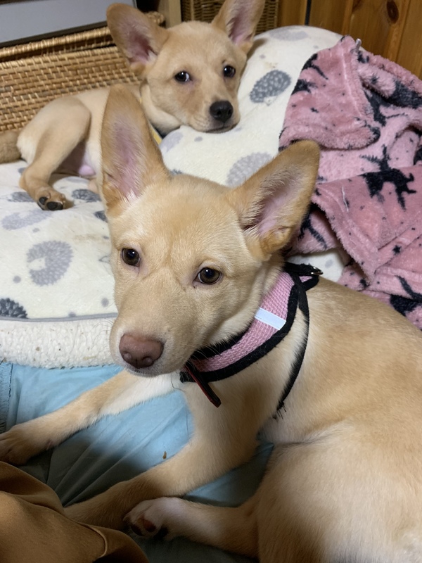 | 特徴(性格など) | 野犬出身のため人に対してビビりなところがありますが今では甘えてくるようになりました。攻撃性はありません。 犬 猫ともに友好的ですがまだ子犬のためしつこい所がありますのでシニアの子には負担になるかもしれません。 女の子は最初女性の方が安心するようです。甘えん坊なのでお留守番の少ない たくさん甘えさせてくれるご家庭が希望です。夜はくっついて寝ています。 お外はまだ怖いようでお散歩はゆっくりマイペースにしています。 男の子は元気いっぱい お散歩も大好きです。一緒に遊んでくれるような先住犬ちゃんがいるお宅が希望です。言えばわかるお利口さんですが 調子に乗りやすいです。 トイレはシーツにしますが、環境が変わると失敗もあると思います。 まだ子犬のためいたずら盛り しつけもこれからです。またビビりな性格もご理解いただけるご家庭が希望です。 |