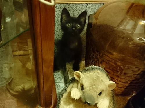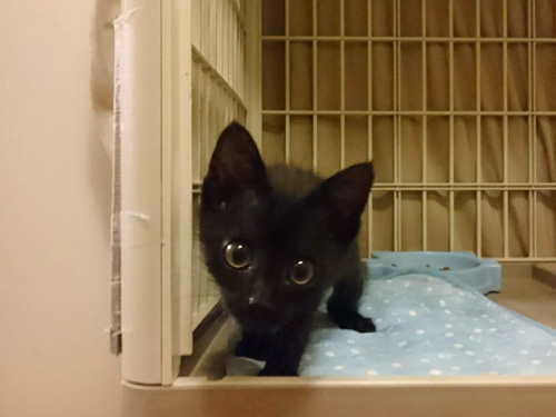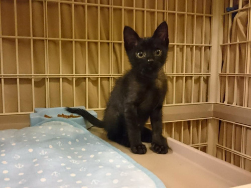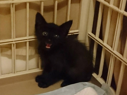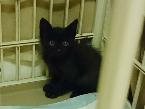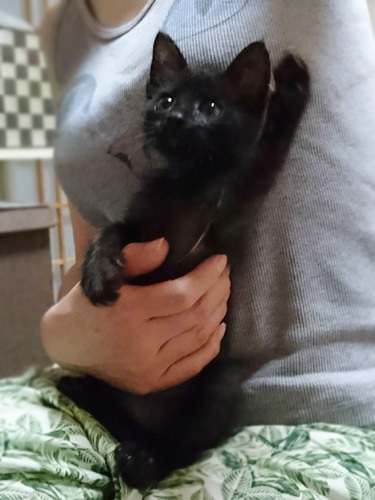 | 特徴(性格など) | 仮名、キョ君 年齢、生後1ヶ月半 性別、男の子 特徴、黒猫。まっすぐ尻尾。甘えん坊。 その他、便検査済み。 まもなくワクチン摂取予定。 保護時の体重800g(2019.7.10) 風邪ひきもなく元気です。 |