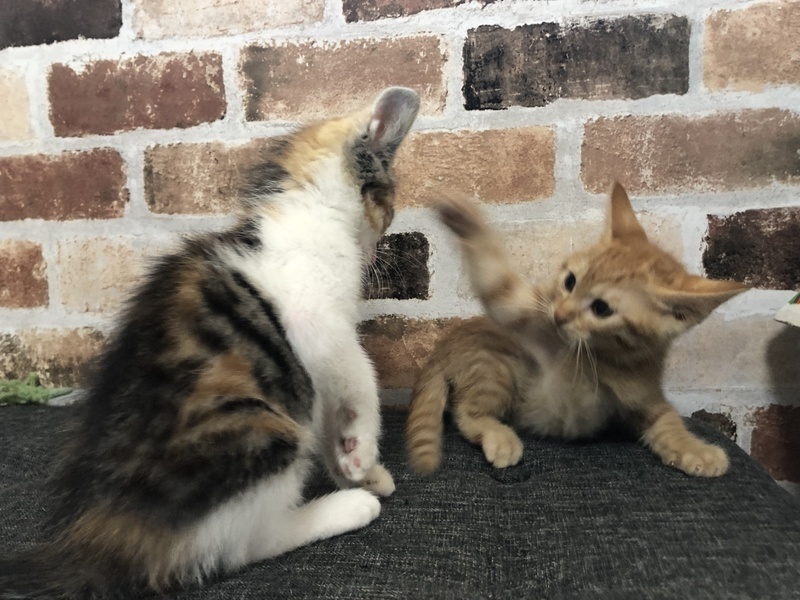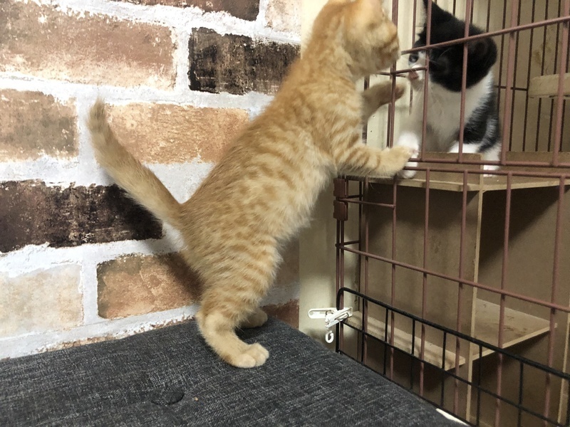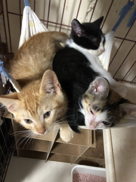 | 特徴(性格など) | 【仮名】アルミン・アルレルトくん 【性格】 ※今回の仮名は進撃の巨人シリーズです。 アルミンはエレン・イェーガーと兄弟で保護されました(ちなみに漫画の中ではエレンとアルミンは兄弟ではないですよ) アルミンとエレンは保護当時とてもかたくなで、なかなか心を開いてくれませんでした。同日に別なところから仮名ミカサ・アッカーマンを保護しており、それぞれ2週間の隔離期間が終了しミカサ、エレン、アルミンと3匹で生活を共にしてからは、格段に人間に慣れてきました。これからもっと慣れてくると思います。 アルミンは思慮深く観察し行動するタイプのようです。仲良し兄弟のエレンとアルミンがくっついて寝ています。 アルミンの運動神経はいまいちで動きがなんとなくトロイです。食欲旺盛唸ってでも食べます。おもちゃ遊びも大好き。かけっこ取っ組み合いも毎日頑張ってます。大人にゃんこも大丈夫です。 脇腹の渦巻き模様がミックス猫の感じがしますね! 進撃シリーズにゃんこ同士のお迎えを希望します♪ |