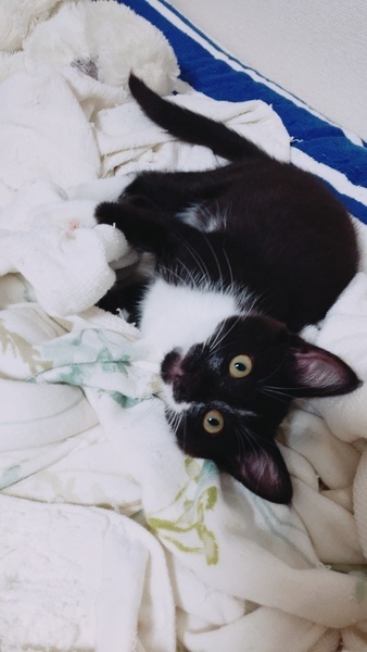 | 特徴(性格など) | 白黒のあご髭ネコちゃんです ノミダニ駆除済 コクシジュウム駆除済 血液検査済 白血病 エイズ陰性 便が少しゆるいので、病院に連れて行きました 異常は無く、虫もいませんでした。 暑さの為、腸内環境が乱れているのでしょうとの事です 薬を1週間出してもらいました 飲ませながらの募集とさせていただきます 8月30日 便は固まってます 子猫は環境の変化に敏感です 体調を崩しやすいという事を頭においてお申込み下さい |