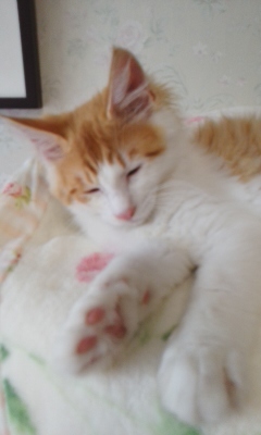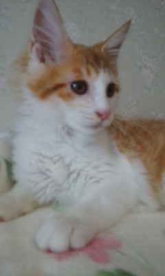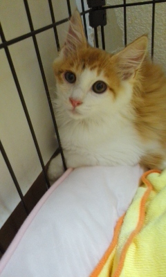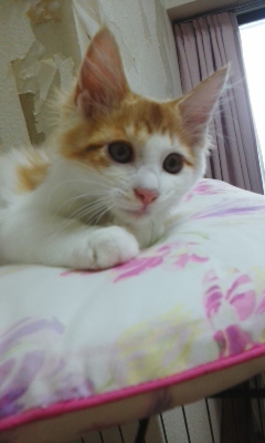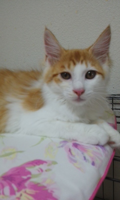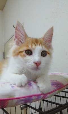 | 特徴(性格など) | 白と薄茶、毛は つやつやと 柔らかく 少し 長め です。 やんちゃで 元気いっぱい、 大人の猫ちゃんとも おじけず 遊びます。 |