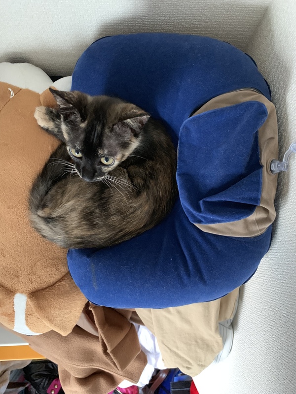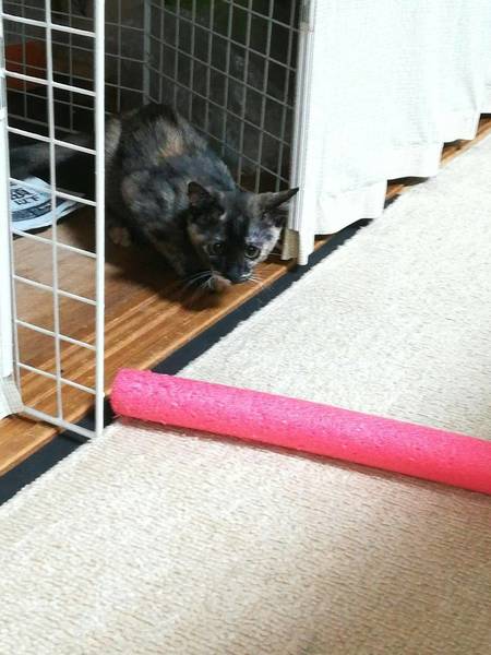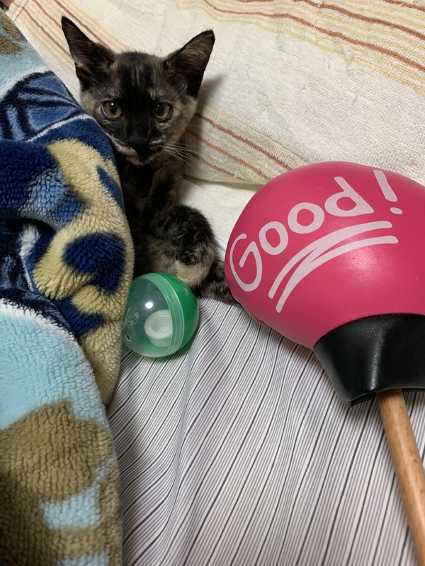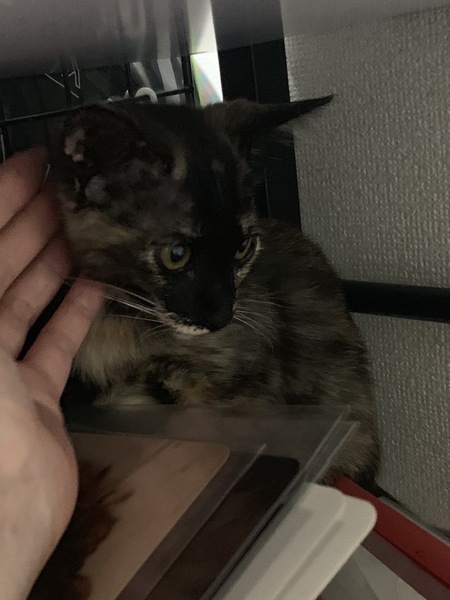 | 特徴(性格など) | 毛色:サビ色 目の色:黄色 性格:人見知り?で時間は少しかかりますが、慣れると人にくっつくのが好きな甘えん坊で何にでもじゃれつく元気な子です。 寂しがり屋で、良くお話をする可愛い子です♪ 猫慣れもしておらず、時間は掛かるかもしれません。 トイレの躾は済んでいます。 フロントライン済です。 |