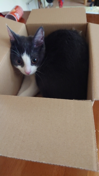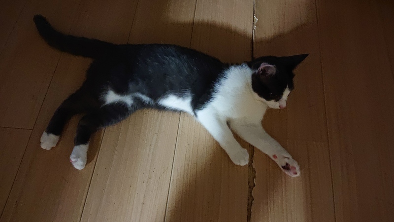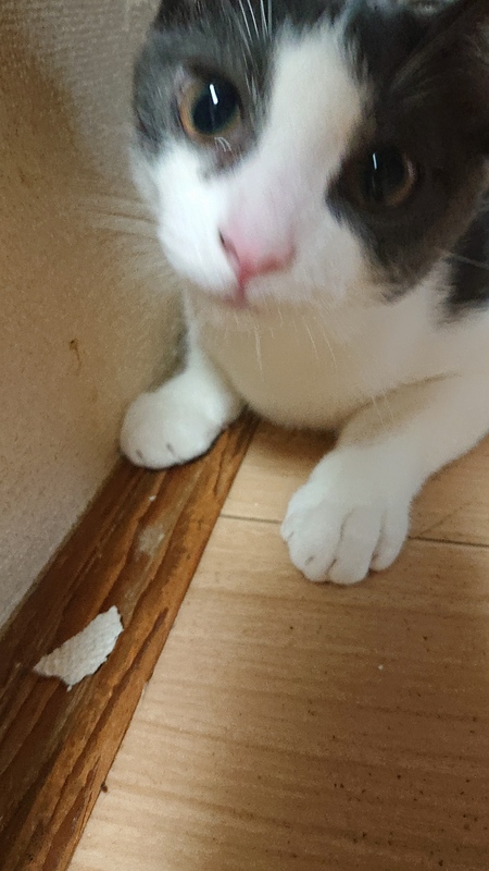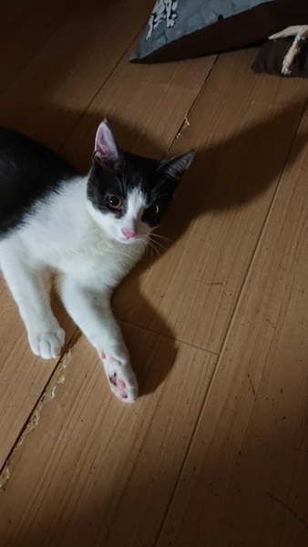 | 特徴(性格など) | シロにグレーのハチワレ猫 (スコティッシュです) 甘えたです (フミフミしてきます) 人と一緒に寝たがります |