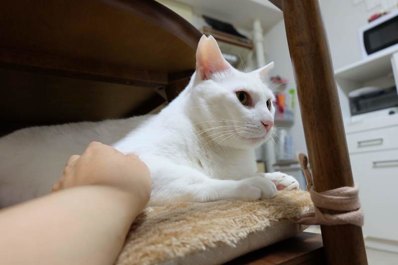 | 特徴(性格など) | 白くて大きい体で、とっても臆病な性格です。 他の猫にいじめられることがあるので、できれば1頭飼いでお願いします。 (子猫は平気なのであとから2頭目を迎えてもらうことは可能だと思います) ナデナデが大好きで、こちらがじっと座っていると「撫でる?」と寄ってきますが、 こちらから近づくと逃げます。 |