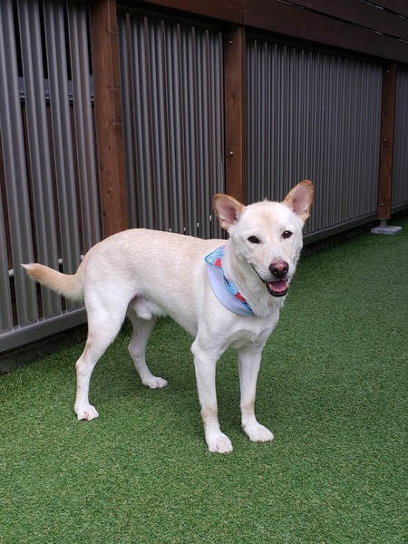 | 特徴(性格など) | ビビりだけど甘えん坊んの小次郎です。 体重は 20 kgです。 性格 ★初めての人や音にはビックリして クレートや自分の部屋ににげます。 慣れてくれば人が大好き、 尻尾フリフリお顔なでてほしくて 近寄ってきます。 最近は朝隣の部屋から入ってきて ベッドの上で少しだけ寝たりする ようになりました。 他の子とは穏便に暮らしてます。 攻撃性はありません。 先住犬たちがご飯を狙いに来ると フードガードするどころか逃げて しまいます。 かなりのビビりで蚤の心臓です。 いや針くらいしかないかも しれません。 ★ご飯大好きで食欲旺盛です。 おやつが大好きです。 ★お散歩大好き。歩き方は早く かなりの引きはありますが、 注意をすればこちらに合わせること も出来ます。 トレーニング続けています。 アイコンタクトも少しですができます。 テンションがあがると強い力で引っ張られるので注意が必要です。 ★昼間はのんびり過ごしています。 いたずらなどもありません。 お留守番も大丈夫です。 慣れるまでは遠吠えするかもしれません。 ★お座り、待てができます。 ★トイレは中と外でできますが、 どちらかといえば外派です。 ★とてもさみしがりやです。 お留守番は短く出来るだけおうちに 誰かいてくれると安心します。 ★フィラリアは陽性で、お薬で治療中です。 ★完全室内飼いをお願いします。 |