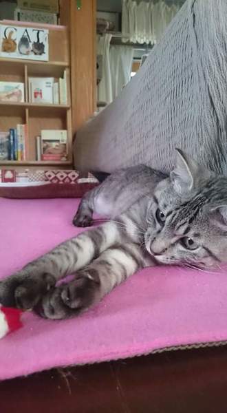 | 里親募集する理由 | 捨てられた銀ちゃんがたどり着いた場所・・・それがおばあちゃんのところでした。 そこにはすでに、銀ちゃんと同じように捨てられたオス猫ふたりが住み着いていました。 おばあちゃんは痴呆が進み、せっかく支給されたお弁当もほとんどを猫たちにあげてしまいます。 それでもお腹が空いて仕方ない猫たちはゴミの日にはゴミを漁り、おばあちゃんのおうちに尋ねてくる人はお弁当を持ったヘルパーさんと間違え追いすがってきます。 当時もっと小さかったぎんちゃんも、そんなお兄ちゃんたちを見て必死に生きてきました。 おばあちゃんのおうちはいつも出入り自由だったので雨風はしのげていたものの、怖がりの小さいぎんちゃんが逃げ場にしていたのは、いつもおうちの外にある側溝でした。 おばあちゃんは本当は施設に入らなければなりません。 しかし「猫たちがいるから・・・」と拒んでいるそうです。 間違いなく捨てられた猫たちがまた捨てられる未来が待っています。 メス猫の銀ちゃんは、TNRしてくれる人もいないこの土地でいつか必ず子猫を産み、厳しい現実にさらされる未来が待っているだけ・・・そう思い不妊手術のため保護したらなんとびっくり、男の子でした!! まだノラ猫生活が短くこの先は家猫としての平和な一生を・・・と願い、新しい飼い主さまを見つけることを決めました。今、ぎんちゃんは順調に家猫修行をがんばっています。 |