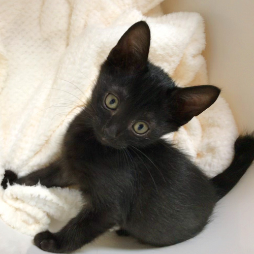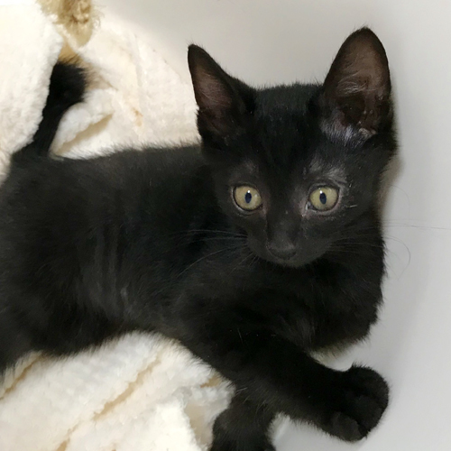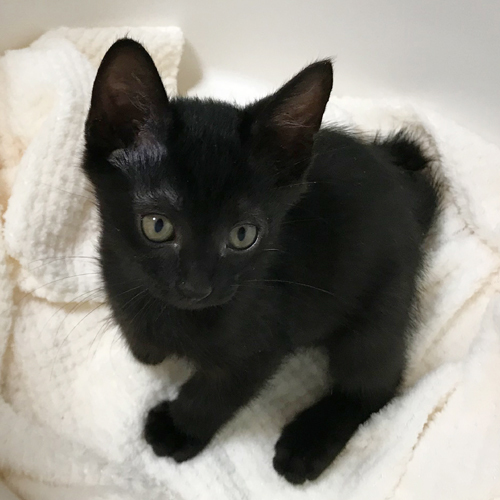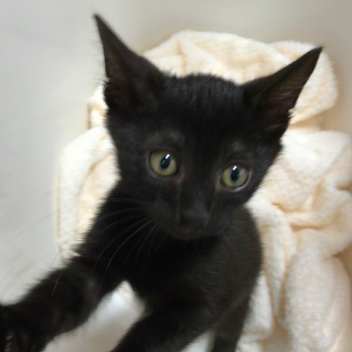 | 特徴(性格など) | 黒猫。 性格は控えめで優しく、空気を読む賢い子猫です。 自分からぐいぐい来るタイプではないものの、遠慮しながらそっと甘えてきます。 抱っこは満更でもないようで、安心しきってすぐ眠りに落ちてしまいます。 声は可愛く、尻尾の先が複雑に丸まっているのが特徴です。 健康状態は良好。 よく食べ、よく出し、兄弟達と毎日元気に遊んでいます。 糞便検査問題なし。念のため虫下しとノミダニ駆除薬投与済みです。 血液検査済み。エイズ・白血病共に陰性。1回目の3種混合ワクチン接種済み。 |