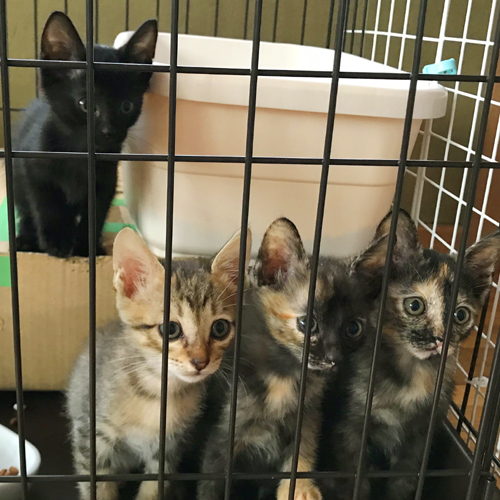 | 里親募集する理由 | 6月末に公園の側溝にいた子猫達と遭遇しました。 連日様子を見たものの母猫の姿はなく、木の上からカラス数羽が様子を窺っていたことと、大雨が近付いていたこともあって急遽保護しました。 我が家は既に3匹の保護猫を抱えている上、夫婦共に留守がちで早朝から夜遅くまで家を空けることが多く、子猫達の世話を満足にしてあげることができません。 親戚や知人友人の他、地元の動物病院やお店などで里親募集のチラシを掲載して頂くも手応えはありません。 兄弟一緒に飼っていただけると最高ですが、4匹のうちどの子か1匹でも大歓迎です。 人馴れ抜群の可愛い子猫達です。どうぞよろしくお願いします! |