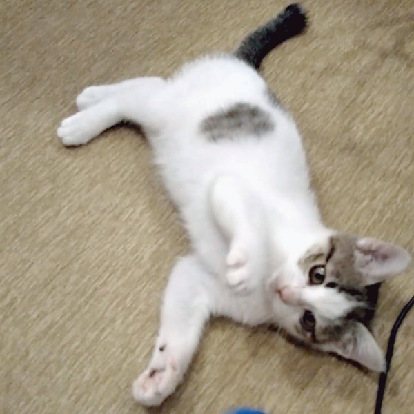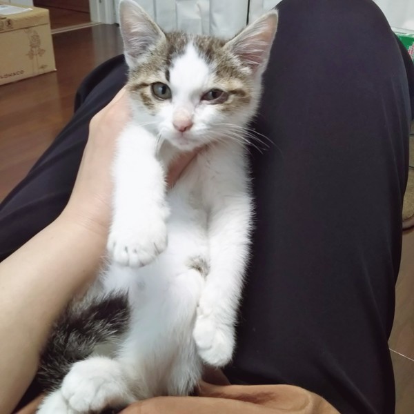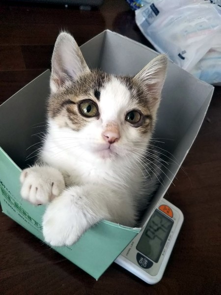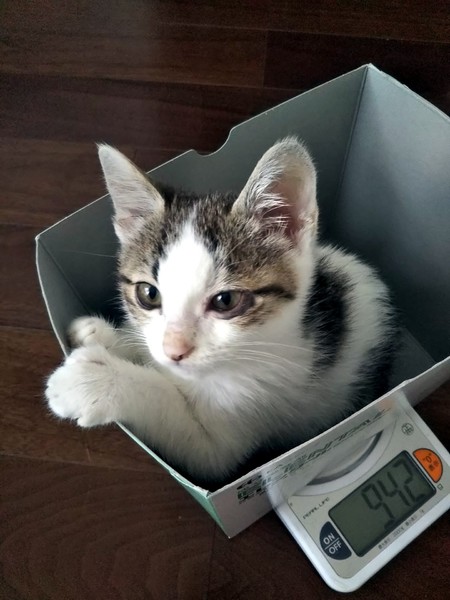 | 里親募集する理由 | 犬のお散歩コースで見かけていた子です。 衰弱して動けない所を保護しました。 すぐに病院で治療してもらい、保温と強制給餌ですっかり元気になりました! 保護した時は目が潰れてましたが、点眼治療で良くなりました。 もう問題ないそうです。 ノミダニ駆除済 猫エイズ白血病検査共に陰性 3種ワクチン1回済 検便で回虫が出ましたので、虫下し中です。 ウチには犬猫5頭居ます。 あんまり沢山の犬猫が居ないようなおうちで、大切にして頂けたらなと思っています。 |