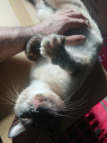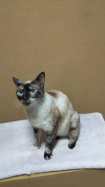 | 特徴(性格など) | 体の色からだとシャムとのMixでしょうか 瞳もブルーです 左後ろ足の先が欠損していますが 古い傷のようで現在は癒えています ビッコひいて歩いてますが 生活には全く支障はありません とても甘えん坊でかまってちゃん 撫でてもらいたがって すぐ膝に乗っかってきます |