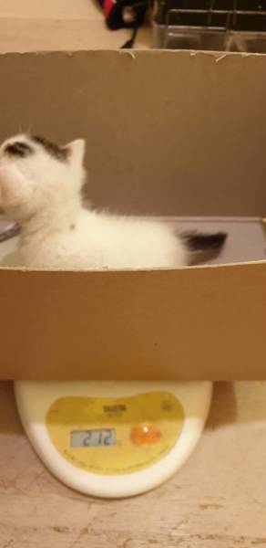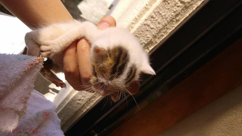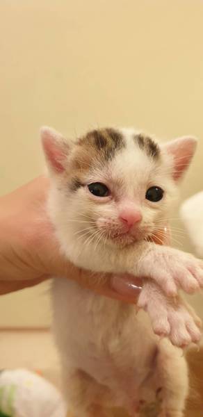 | 特徴(性格など) | 白地に顔としっぽに模様あり。 甘えたで、小さいのにゴロゴロ言ってミルクを飲みます! まだ小さすぎて、ワクチン、エイズ検査出来ません。 |