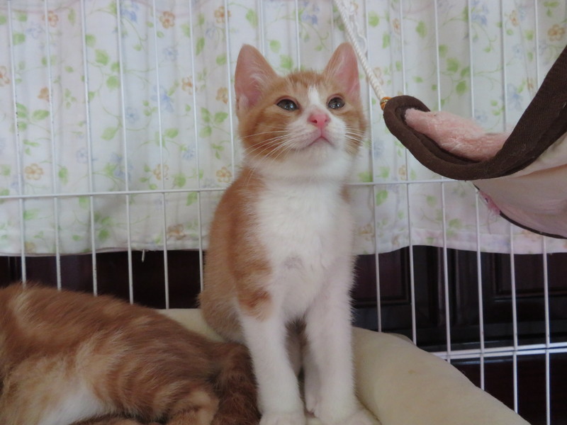 | 特徴(性格など) | オール男子:茶トラのトラくん、茶白のYくん、茶白のMくんの仲良し3きょうだいです。YくんMくんはそっくりですが、やや薄い茶色の方がYくんです。トラくんは大きな縞模様が綺麗な茶トラです。 保護時はシャーシャーブラザーズでしたが、あれよあれよという間に大人しくなっちゃいました。今では人間の手が怖くなくなり、遊びもご飯も楽しくて嬉しくて仕方ないといった3匹です。 「いい子だねぇ」って言いながら抱っこをしています。 まだ大きな音や急な動作に怖がることがありますので、声掛けしながらゆっくり近づくなど心がけています。 |