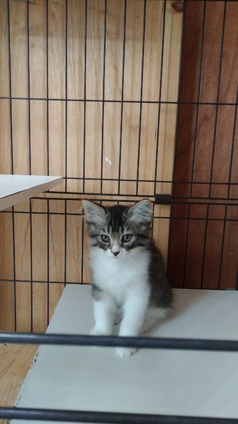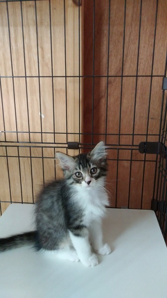 | 特徴(性格など) | 長毛の子猫です。兄弟で保護しました。弟くんよりも人慣れが早く、利発な子です。抱っこをするとゴロゴロ言って喜び、お世話をしているとちょっかいを出してきます。 | ||