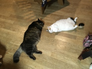 | 里親募集する理由 | 当方の家族(弟)が仕事で徳島市内を車で走行中、信号待ちをしていた前の車のボンネットの中から子猫の兄弟が飛び出してきて、保護しました。(前の車の運転手によると、子猫の声が聞こえるからおかしいなと思いながら走っていたとの由)放置すれば車道で車に敷かれていたところを命拾いした子達です。 ノミが大量に寄生しており猫風邪もひいていましたが、ノミ駆除済み、猫風邪治療済み(目薬のみ継続中)、何度検便しても寄生虫は出ませんでしたが、念のための虫下し薬済み、猫エイズ、白血病ともに陰性。よく遊ぶ元気な仲良し兄弟です。 |