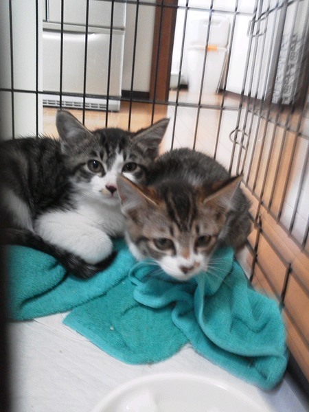 | 里親募集する理由 | 近所の野良猫が空き家で子育てをしていました。子猫2匹は保護して里親さんを探すことにしました。母猫は不妊手術をして地域猫にする予定です。 | ||
