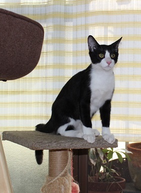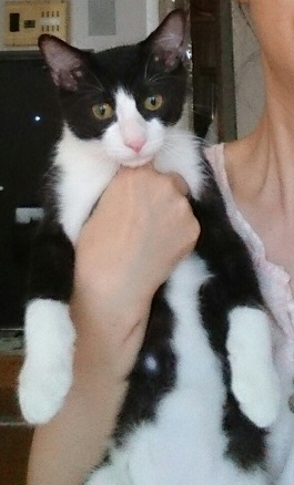 | 特徴(性格など) | 白黒猫です。尻尾はまっすぐ、足にはソックス履いています。 猫も人も大好き。 |