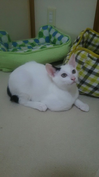 | 特徴(性格など) | 名前は、ライトちゃん。白地にキジ柄、尾尻長くきれい。 大人猫ちゃんにシャーされても全然平気、4兄弟姉妹の中で1番体大きく、元気です。 レフトちゃんと一緒に募集です。ライトちゃんのみでしたら、先住猫ちゃんいる方希望です。 トライアルあります。 |
