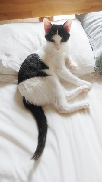 | 特徴(性格など) | ぱっちりおめめの美形男子 鳴き声は控えめでとっても可愛いです サイレントニャーでよく鳴きます 物怖じしない性格で、人慣れしています 現在多頭の環境で暮らしているので、先住猫ちゃんのいるお家でも大丈夫かと思います トイレも上手です しっぽの先は幸せを呼ぶ?可愛いキャンドルテールです☆ |