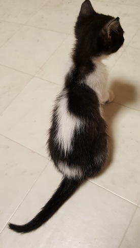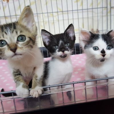 | 特徴(性格など) | 仮に「咲ちゃん」と呼んでいます。 目が開いたばかりの頃、愛護センターよりやってきました。 甘えん坊ですが、慎重派です。兄弟達の後をついていき、安心だとわかると遊びます。 個性的な柄です。仁君、野風さんと兄妹です。 預かりブログです。http://jojo148.blog93.fc2.com/ |