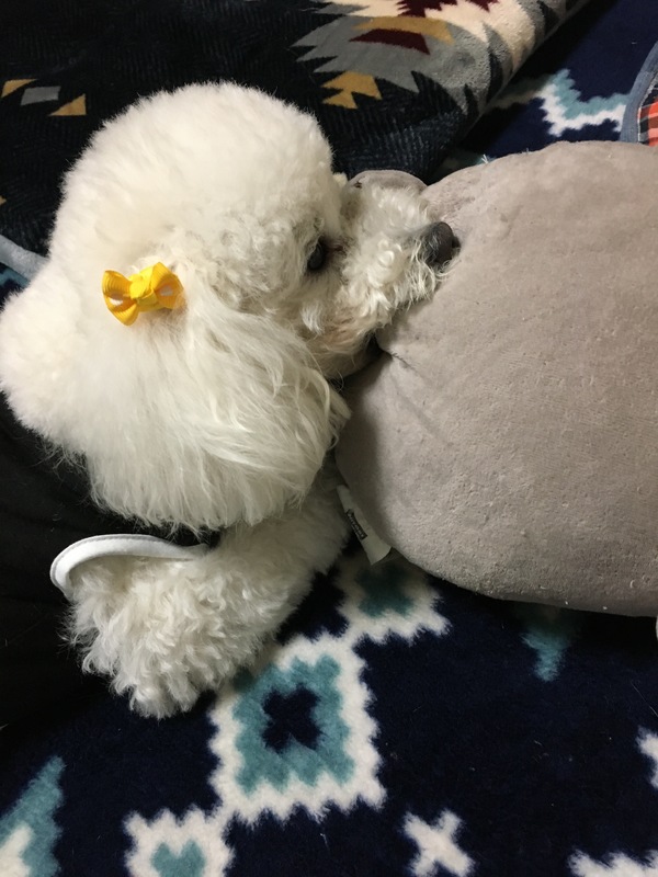 | 特徴(性格など) | ホワイトのプードル、4.8キロ。 まだ3歳なのでヤンチャですがとても優しい甘えっ子です。大きい音やチャイムなどには吠えが出てしまいます。 子供も大好きなようです。 最初は警戒しますが、慣れれば他犬とも遊べます。 過去に男性から虐待を受けていたようで、散歩中でも男性とすれ違うと飛びついて吠えます。 |