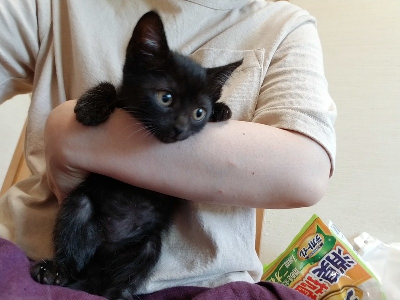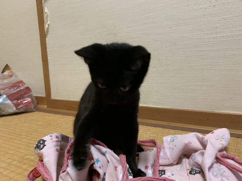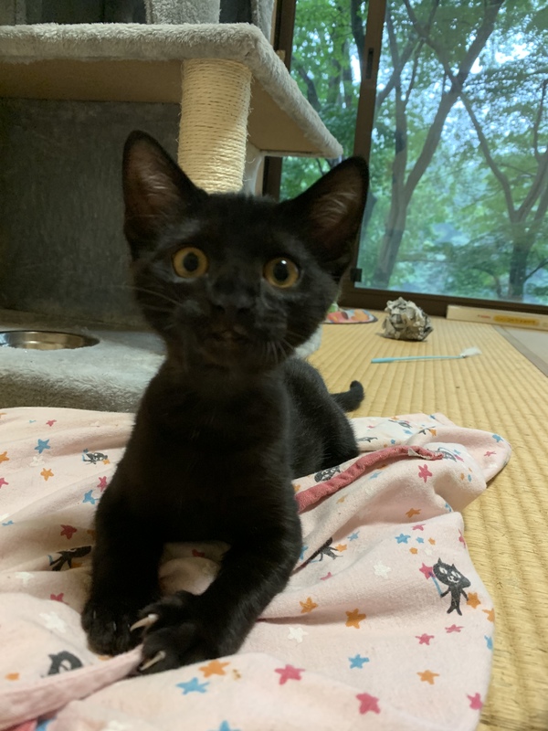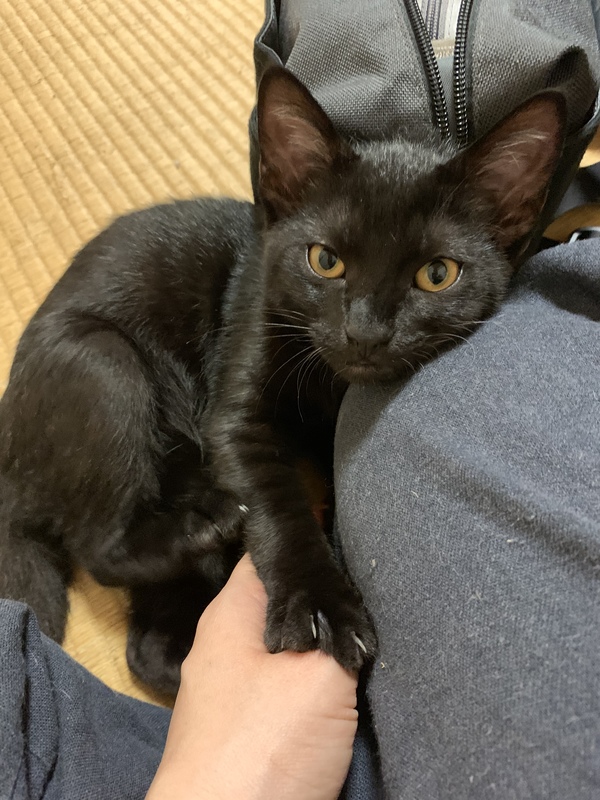 | 特徴(性格など) | 真っ黒の女の子です。もうすぐ3カ月になります。 多少の人見知りはありますが、すぐ慣れて甘えてきます。 トイレのしつけ済、失敗はほとんどしない良い子です。 駆虫済、健康です。 |