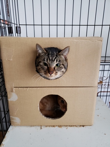 | 特徴(性格など) | ●猫の種類 茶トラ(オス) ・ グレサバ(オス) ●現在の健康状態 良好 ●日頃の様子 グレサバは好奇心旺盛で動きも早くヤンチャな子です 茶トラは慎重派でグレーの動きを観察して行動します |