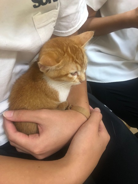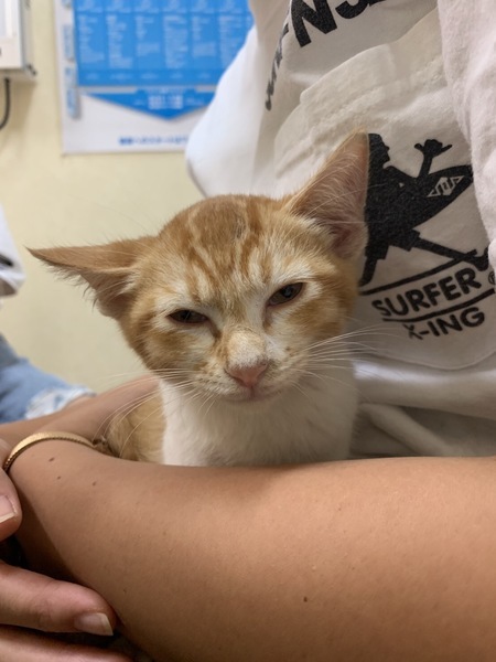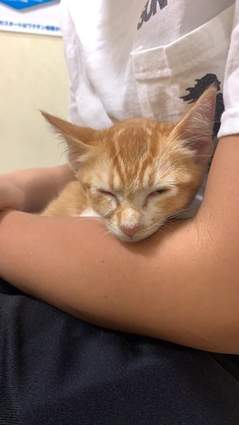| 特徴(性格など) | 茶トラ。 とにかく人が好きで、抱っこすると、大きくゴロゴロとノドを鳴らして甘え、目を細めてうっとりしてくれます。大人の猫達とも仲良くできます。 猫エイズ・猫白血病 陰性です。 風邪症状もありません。 |