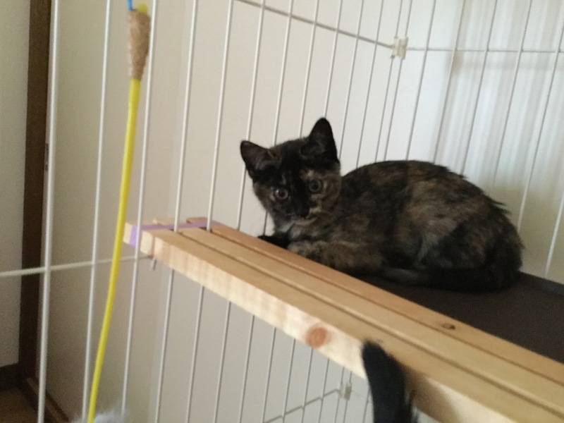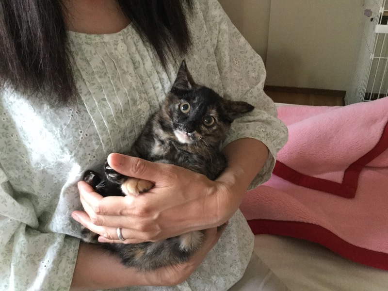 | 特徴(性格など) | 色:サビ 体重: 1.3キロ(7月16日計測) 性格:ビビりですが抱っこできます。少しずつ慣れてきました。 体調:7月16日に病院で回虫駆除しました。1ヶ月後くらいに再検診が必要です。 |