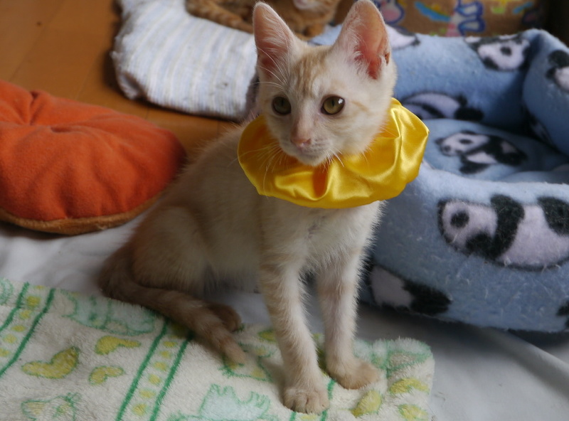 | 特徴(性格など) | ベージュ色の元気な男の子 名前をきいろと言います おもちゃや保護猫の仲間と一緒に遊ぶのが大好き よく人に慣れていて抱っこも平気 触ってもらうのも好きです 3種ワクチン接種済み 虫下し、ノミダニ駆除済み |