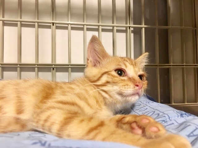 | 特徴(性格など) | 仮名:レイくん 性別:オス 5月上旬生まれ エイズ・白血病共に陰性 茶トラのルイくんと兄弟です。 顔がよく似ていますが 見分け方として、尻尾がまっすぐ伸びている方がルイくん。 尻尾が少し下に折れ気味なのがレイくんです。 健康状態良好。食欲旺盛。犬、他猫同居可能。 性格:少しビビリの引っ込み思案。 兄弟(4きょうだい)と毎日元気に走り回って遊んでいます。 (トンネルのおもちゃが大好き) 他猫と仲良くなるのは少し時間がかかるかもしれませんが さみしがり屋なので先住猫がいるお宅か、兄弟のルイくんと2匹一緒にお迎え頂けるお家とのご縁をお待ちしています。 |