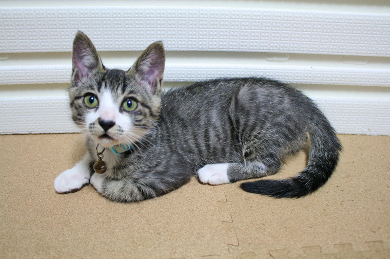 | 里親募集する理由 | 今年の6月3日に広島市内で植木の上に寄り添って衰弱していた子猫兄弟を保護しました。 保護した時点で生後1~2週間くらいのこと。 兄弟の女の子は新しい世話主さんが決まりました。 男の子も迎えて下さるご家庭があればと思い 里親さんを探す事になりました。 1回目の検便は問題なし。 1回目のワクチンは6月25日に接種済み。 2回目のワクチンは7月27日に接種済み。 2回目の検便は問題なし。 |