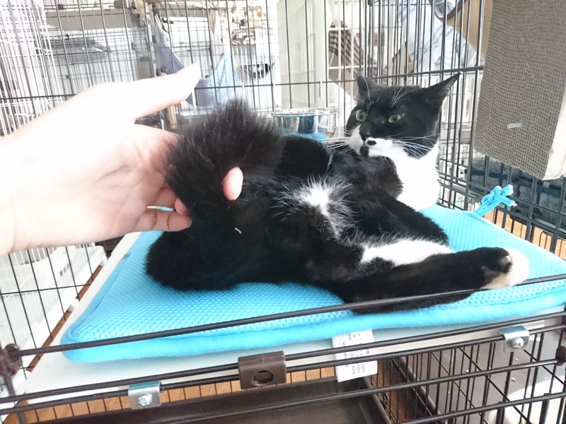 | 特徴(性格など) | 2017.6月生まれ(推測) 毛色 黒白 元々飼い猫だったので、とても穏やかで甘えん坊です。 2歳の男の子にしては少し小柄です。 ナデナデされるのが大好きです。 しっぽは幸運の鍵しっぽです。 |