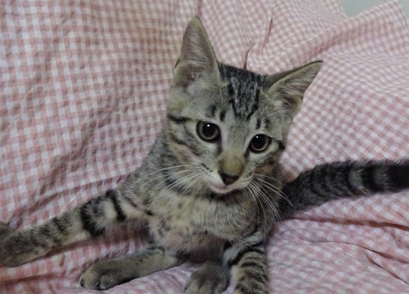 | 特徴(性格など) | 仮名: チルくん(オス) 毛色: キジトラですが、少しグレーぽい、明るい色合いです。 尻尾は長い。 性格: 人なれしていますが、少しビビリな所もあり、カメラが嫌いです。活発で、ご飯を催促する時とケージから出て遊びたい時には鳴いて呼びます。抱っこも好きな甘えん坊です。 のみ取り済 検便済 駆虫済 3種混合ワクチン済 猫エイズ・白血病ウィルス検査はともに陰性 |