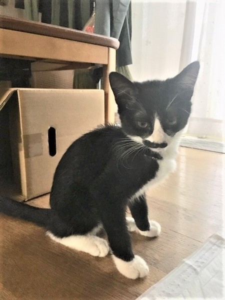 | 特徴(性格など) | 仮名:豆之介くん 推定生後4か月半(2019年3月末生まれ) 性別:オス 毛柄:黒白ハチワレ 白ソックス #鼻周り汚れ隊 エイズ・白血病共に陰性。 ワクチン1回接種済・検便・ノミ取り・駆虫済 性格: 甘えん坊すぎませんか?という位の甘えん坊さんです。 この顔で甘えます(笑) 抱っこしてもらう事も大好きで、ニンゲンが大好き。 オモチャでもよく遊びます。 お届け初日から一緒に寝られます(笑) どこから来たのか、大人猫に追われてしまって迷子になったのか、小さな身体でお腹を空かせて彷徨って、辿り着きました。 安心して暮らせるお家、もう二度と彷徨わなくても良いように、迷子・脱走防止対策を施して下さる、家族として迎えて下さるお家とのご縁をお待ちしています。 |