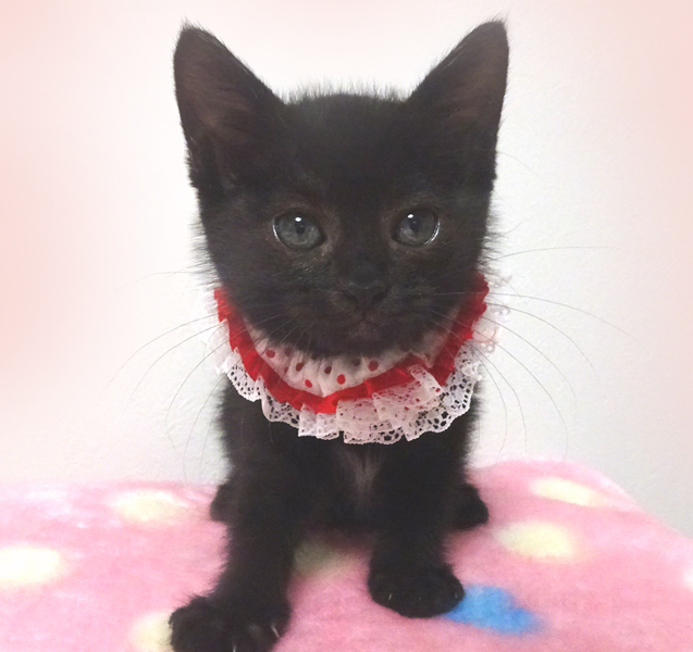 | 特徴(性格など) | 【猫の仮名】 美黒(みく)ちゃん (担当 松嶋) 【毛色・柄】 黒猫、胸に白い毛、長目のシッポ 可愛い女の子で、乳飲み子から育てたので大変人慣れしています♪ 猫を飼うのが初めての方でも大丈夫です♪ 走っても大丈夫な広さのペット可のお住まいで、家族の一員として生涯大切にして下さるご家族を募集しています。 猫だけのお留守番が長時間でないご家族を希望します。 |