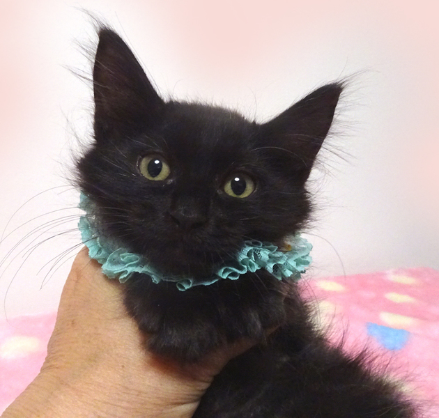 | 特徴(性格など) | 【猫の仮名】 黒音(くおん)くん (担当 松嶋) 【毛色・柄】 長毛の黒、長いシッポでカギ ふわふわ長毛の可愛い男の子です♪ 乳飲み子から育てたので大変人慣れしています♪ 猫を飼うのが初めての方でも大丈夫です♪ 走っても大丈夫な広さのペット可のお住まいで、家族の一員として生涯大切にして下さるご家族を募集しています。 猫だけのお留守番が長時間でないご家族を希望します。 |