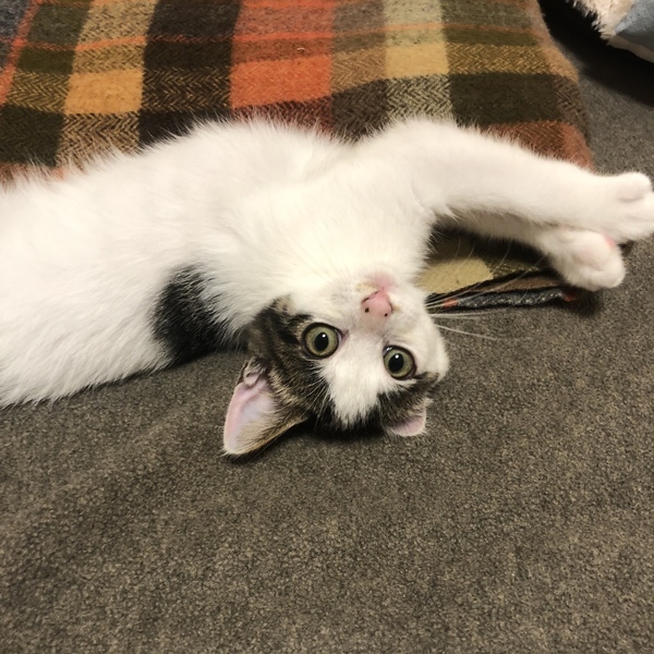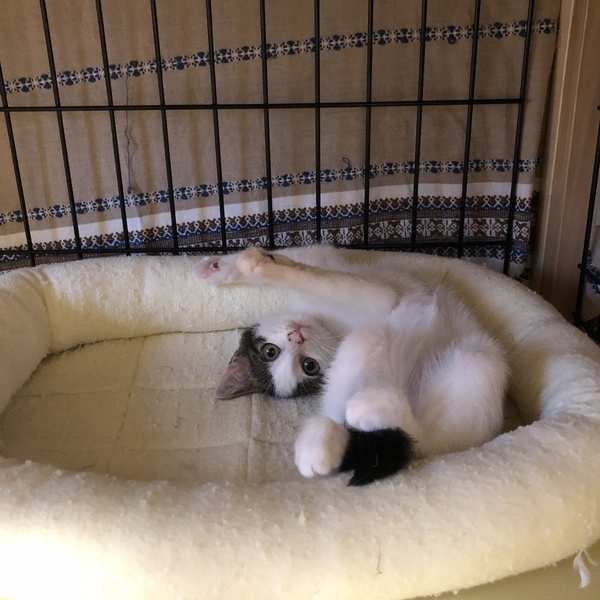 | 特徴(性格など) | 保護から1ヶ月が経ち人も猫も大好きな愛らしい猫になりました。 基本穏やかな子ですが最近は先輩猫と追いかけっこやニャンプロを毎日開催中で元気いっぱいです。 |