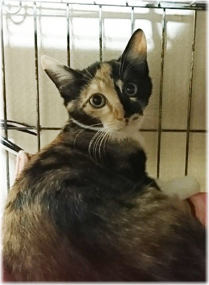 | 特徴(性格など) | お顔の模様がきれいに分かれている可愛い三毛の女の子。 現在募集中の、もう1匹の三毛猫ちゃんと姉妹です。 ちょっと怖がり、臆病な子ですが、子猫なので新しい環境に慣れるのも早いと思います。 ★健康状態良好 ★駆虫済み ★エイズ・白血病等の血液検査の結果、陰性 ★マイクロチップ埋め込み済み |