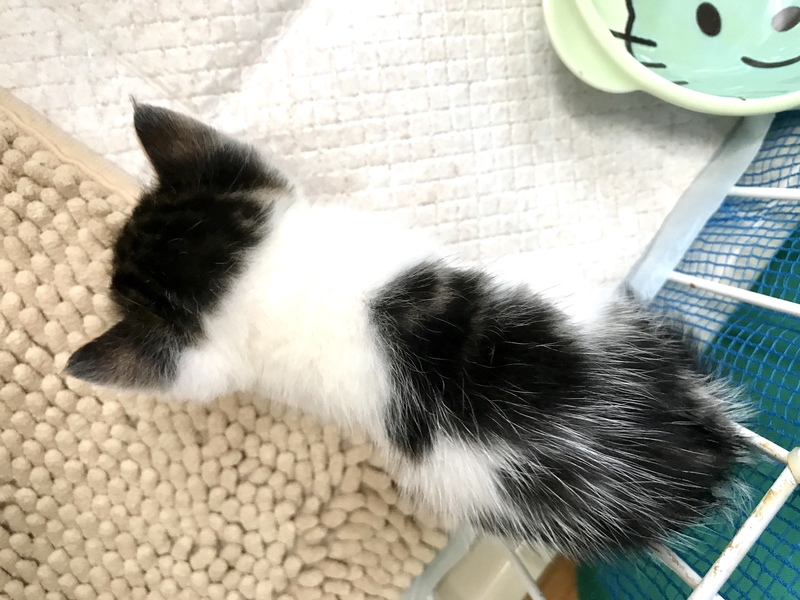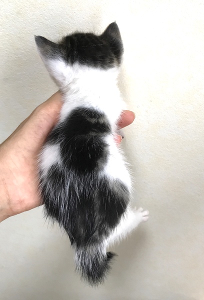 | 特徴(性格など) | 背中側から見ると、白黒かと思いきや、お顔はキジ白です。 M字マークとアイラインの入った綺麗な子です。 とても懐っこく活発です。ようやく歯が生え始めました。 尻尾が少し曲がっています。短くはありません。 300グラム・健康診断済み・ノミダニのお薬投与済み。 |