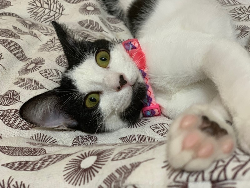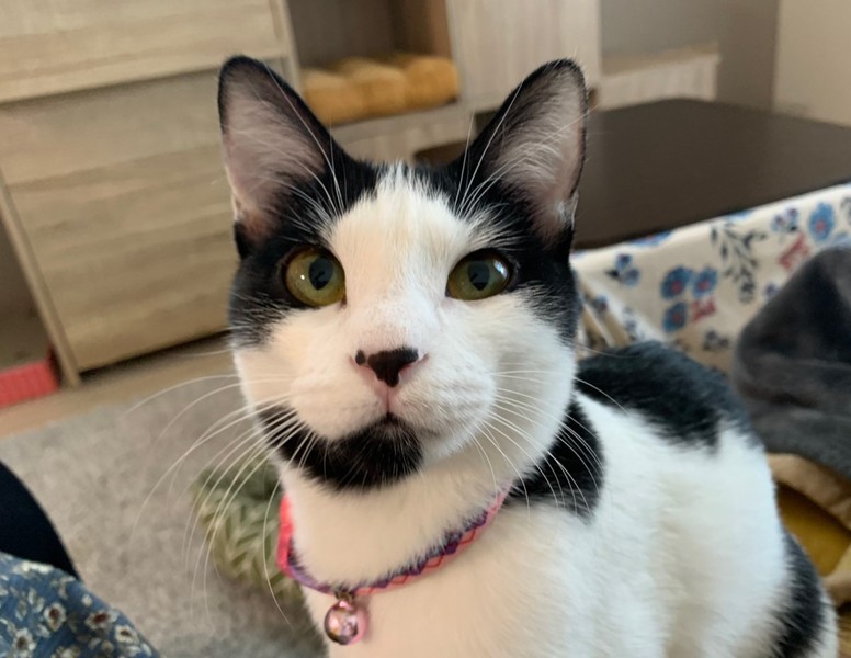 | 特徴(性格など) | ユニーク柄の「乙女」ちゃん♡ ちょっぴりビビり♪ ちょっぴり控えめ、物静かなマイペース女のコ♡ 現在、ドライフードを置き餌として、栄養補給のため、一日2回のパウチを与えています。 <推定誕生日:2019年5月初め> |