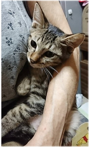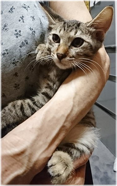 | 特徴(性格など) | キジトラ(しっぽ長)の男の子。 初めは人見知りはしますがが、割と人慣れはしています。 まだ子猫なので新しい環境に慣れるのも早いと思います。 |