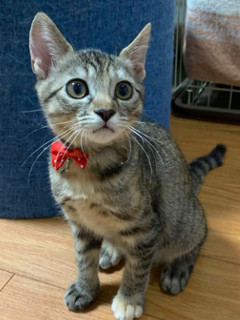 | 特徴(性格など) | ☆★☆★現在お見合い予定がございます☆★☆★ 仮名を『れい』といいます。 きじとらの女の仔です。 ダンボールに入っていたところを保護しました。 別番で募集中の『なる』と姉妹です。 目も開かない時に保護をされて、ミルクボランティアさんに愛情いっぱいに育ててもらったので、自分のことを猫と思っていないかもしれません。 お転婆で姉妹一緒によく動き回っています! この先も仲良し姉妹一緒なら嬉しいですが、ステキなご縁があれば別々の幸せもあるのかな。と思っています。 愛の塊『れい』にぜひ会いにいらしてください。 【医療処置情報】これから実施のも含まれます *健康チェック *3種混合ワクチン接種 *ウイルス検査実施(FIV.FeLV共に陰性) *検便実施 *駆虫薬投与(レボリューション、ドロンタール) *マイクロチップ装着 *不妊・去勢手術 |