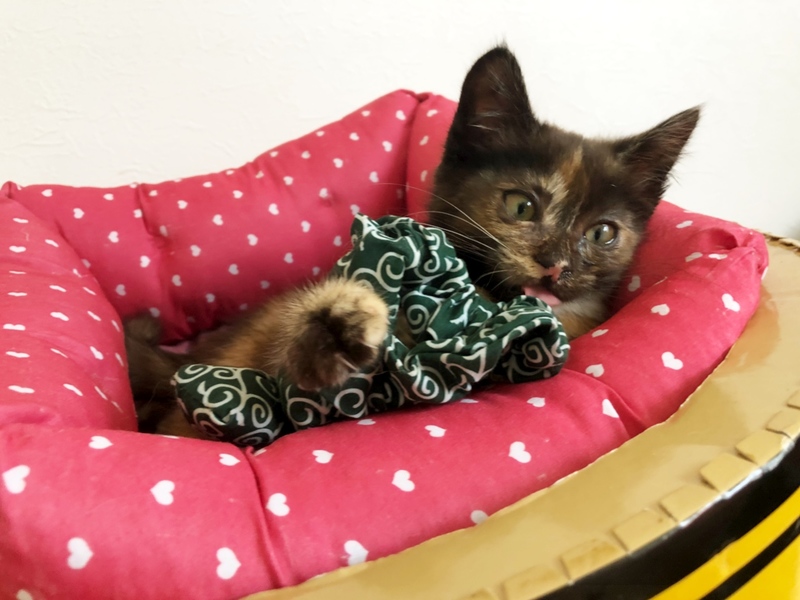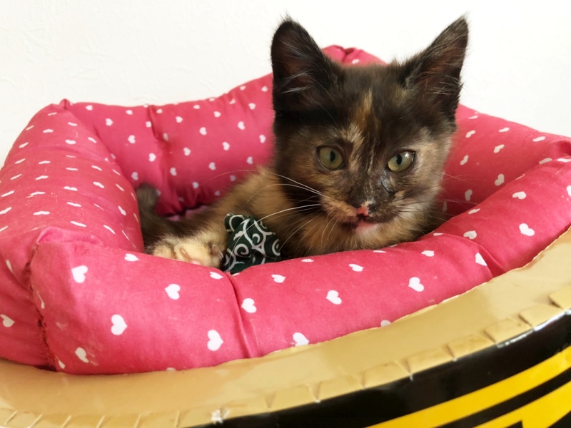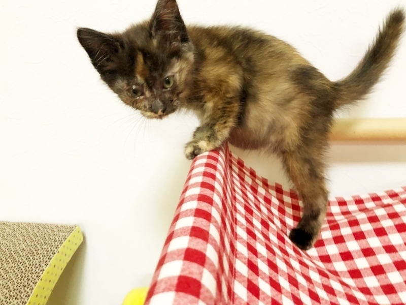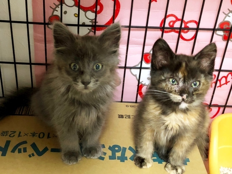 | 里親募集する理由 | 交通量の多い繁華街で姉妹でいる所を保護。 母猫は見当たらず、3匹いましたが1匹は車に轢かれて亡くなりました。 |