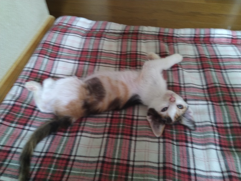 | 特徴(性格など) | 三毛猫です。少しやせてますが元気よく走り回ってます。よく膝に乗ってきます。 | ||